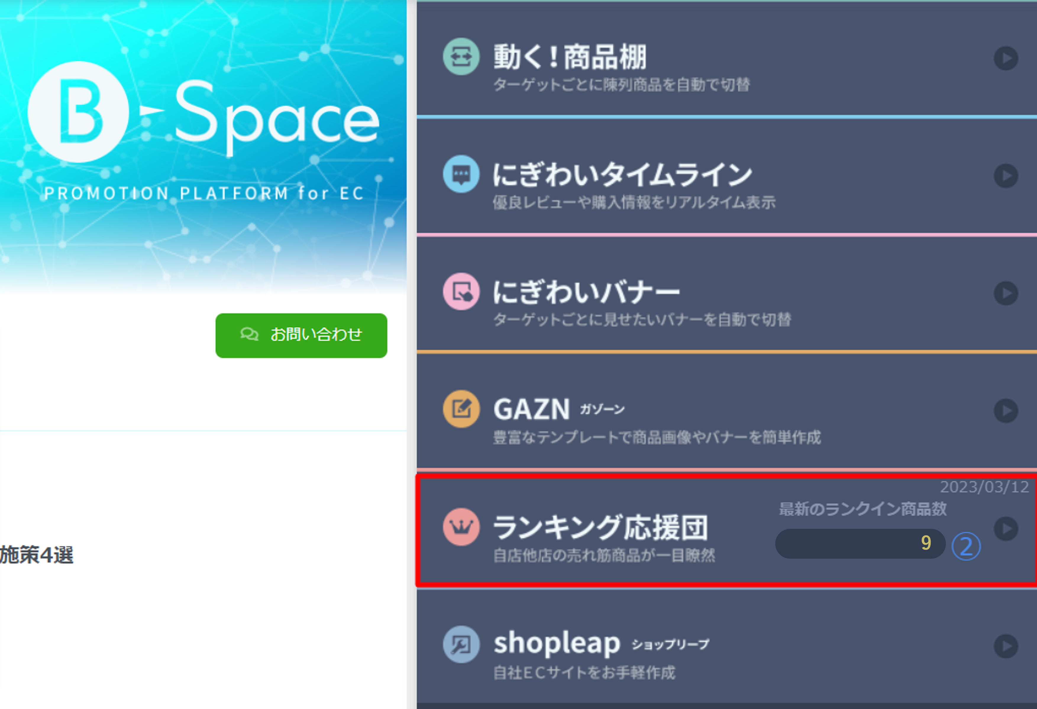 B-Spaceのトップページからランキング応援団のトップページに行くことができます。