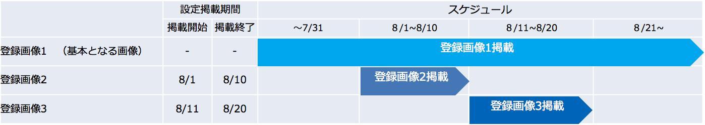 8⽉11⽇〜20⽇の間:「登録画像1」と「登録画像3」両⽅が表⽰されます。