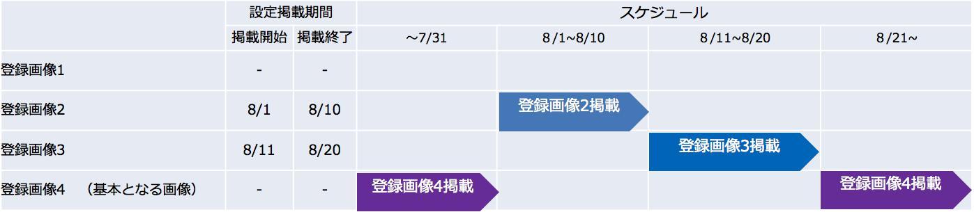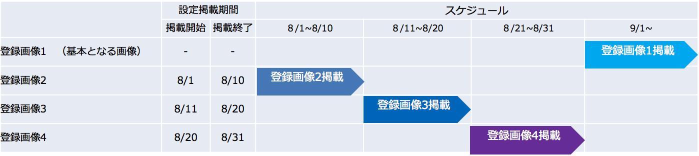 そのため、期間設定の仕⽅によって表⽰される画像の順番が変わり、掲載期間が終わった後に表⽰される基本の画像も変わります。