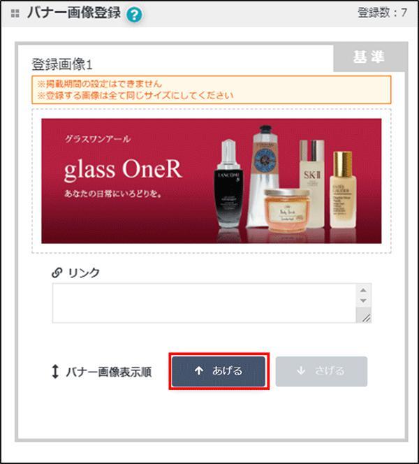 複数のバ ナー画像を登録する場合は、全て「登録画像1」と同じサイズで登録してください。