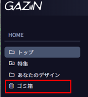 左上のGAZNのロゴからトップページに移動し、「ゴミ箱」を選択します。