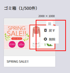 マウスオンすると、右上に「三」が表示されますので、クリックすると「戻す」「削除」が選択できます。