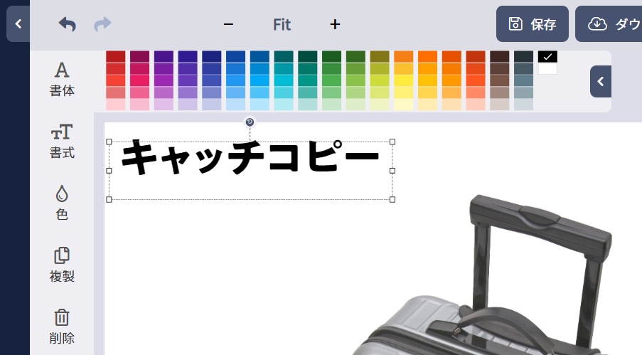 「色」を選択すると、カラーパレットが表示されます。カラーパレットから使いたい文字を選択します。
