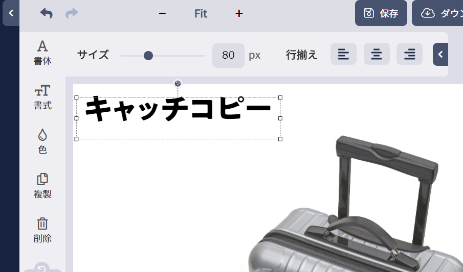 文字を選択すると回転マークが表示されるので、カーソルをマークに合わせて、回転したい方向に回転させます。
