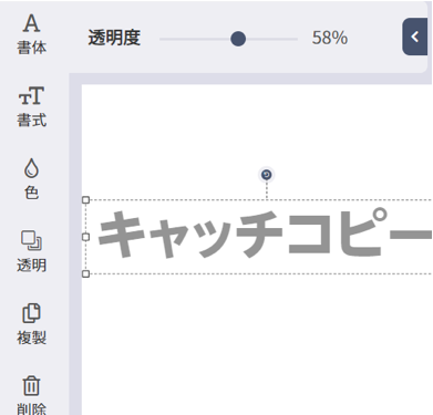 透明にしたい文字を選択し「透明」を押すと透明度を調整できます。