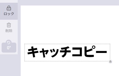 固定したい文字を選択し「ロック」を押すと固定できます。もう一度「ロック」を押すと解除されます。 ※ロックすると編集や位置の変更ができません